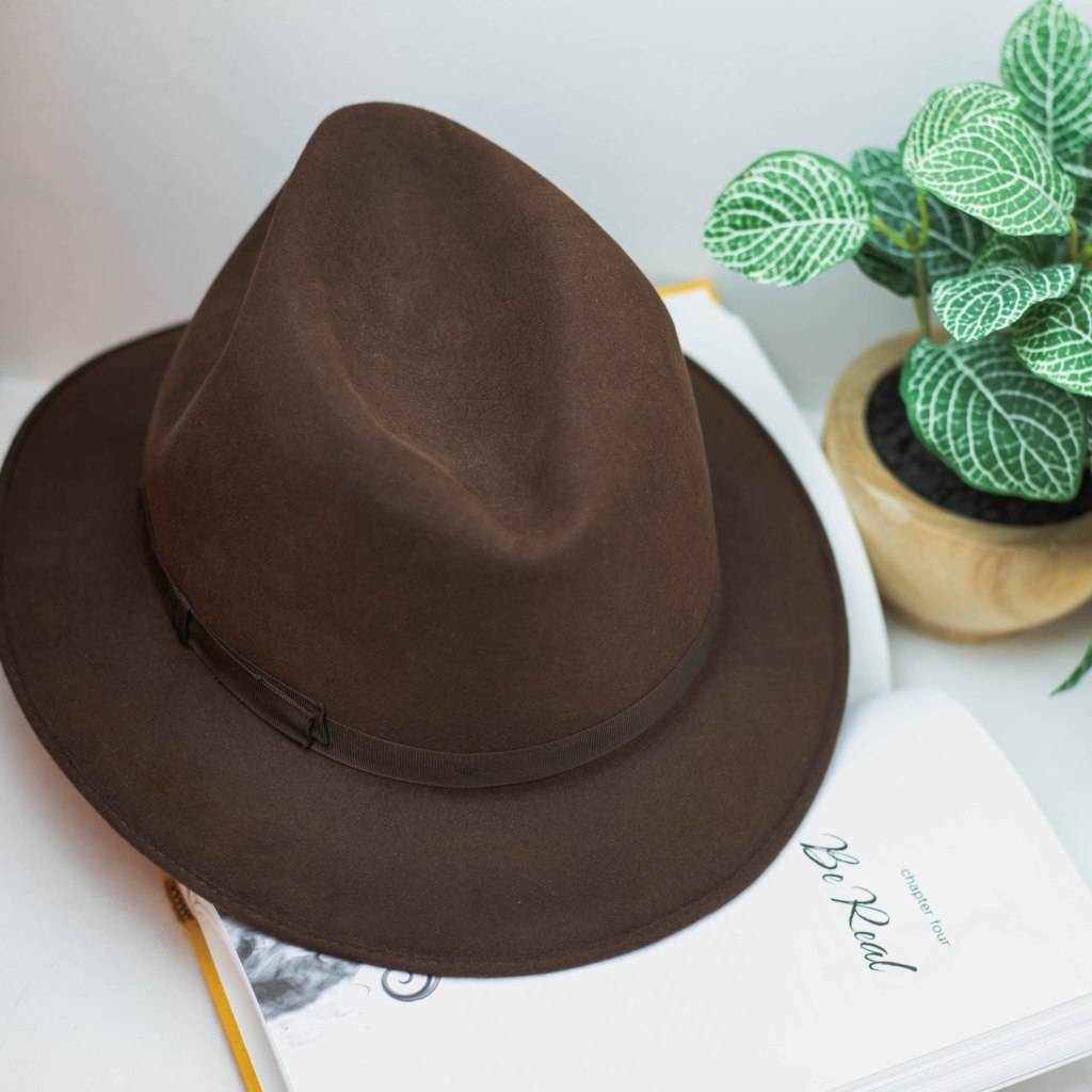 This brown felt fedora had an air of sophistication, a timeless elegance that made it stand out in Amelia’s collection. Every time she wore it, she felt like a character from a classic film, stepping into a bygone era. The fedora, with its nice brim and deep brown hue, had an almost magical quality to it.